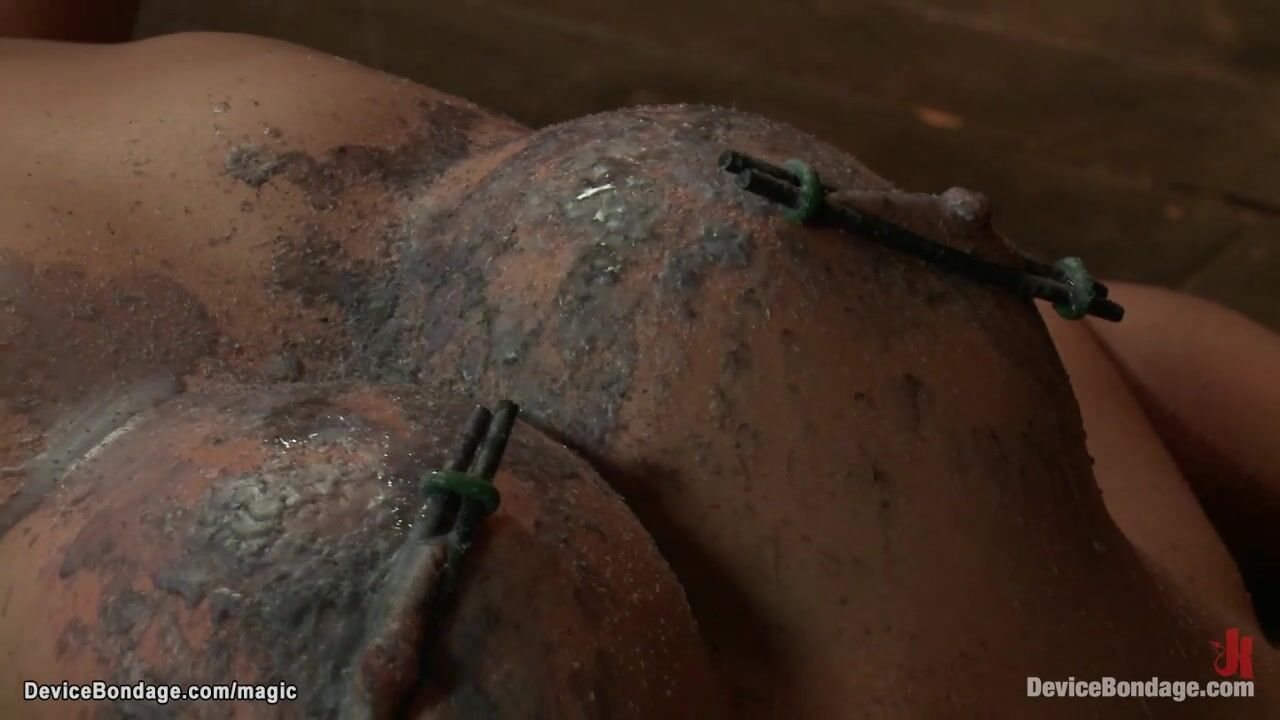 MILF lezdoms Claire Adams and Mz Berlin bind in metal huge boobs Mia Lelani and wax her pussy and tits then make Bella Rossi lick her pussy on device bondage