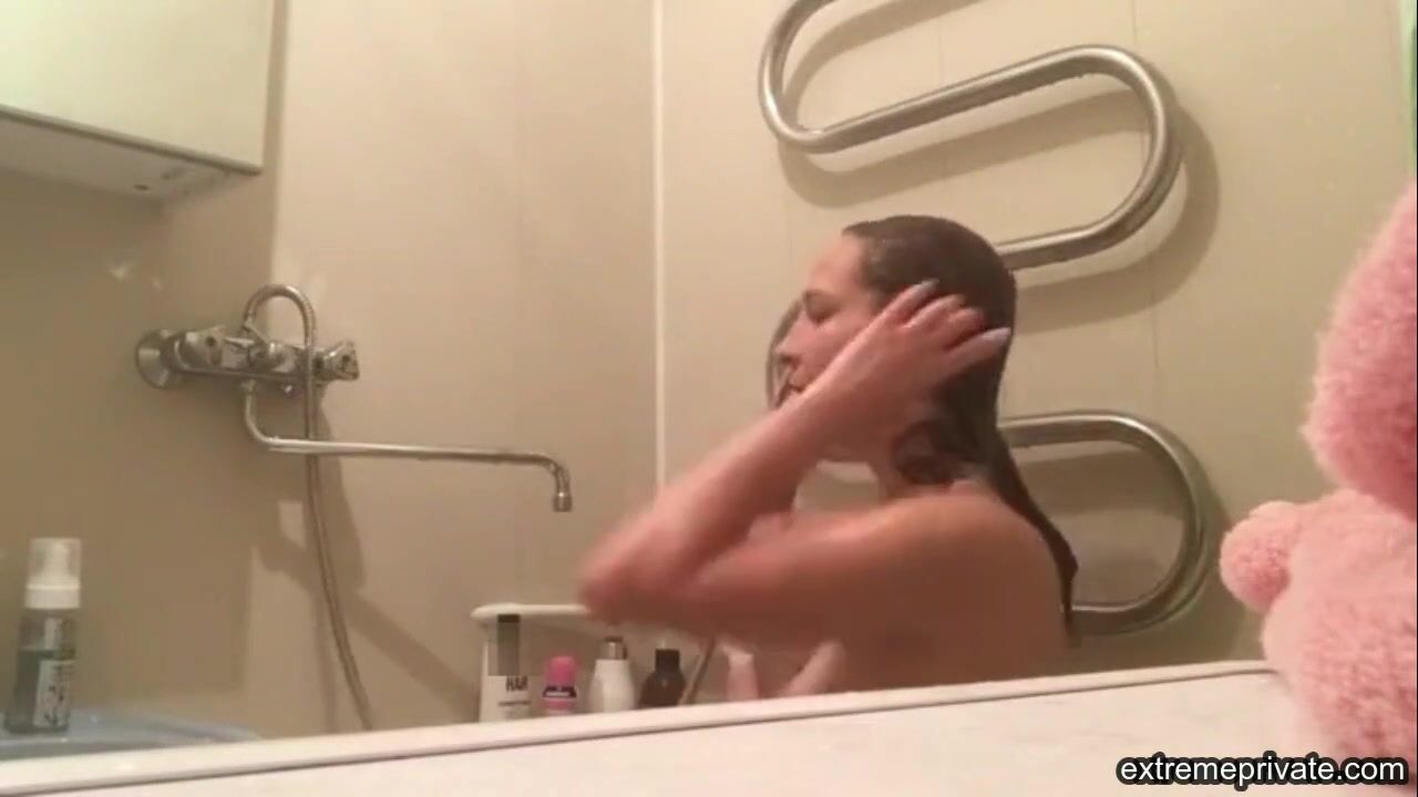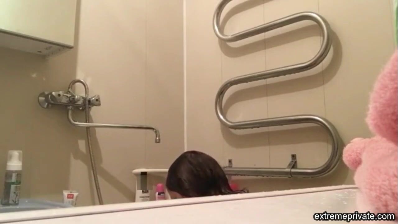 My niece Eline takes a shower in our bathroom while I watch her live thanks to my camera. I see how she shaves her body, that she aims the showerhead on her pussy. So horny!