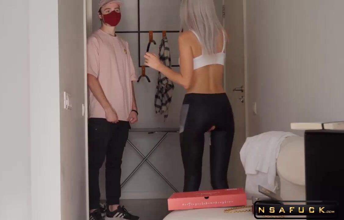 Pizza Guy Fucks Oiled Pussy during the Live Stream on Stripchat Eva Elfie
