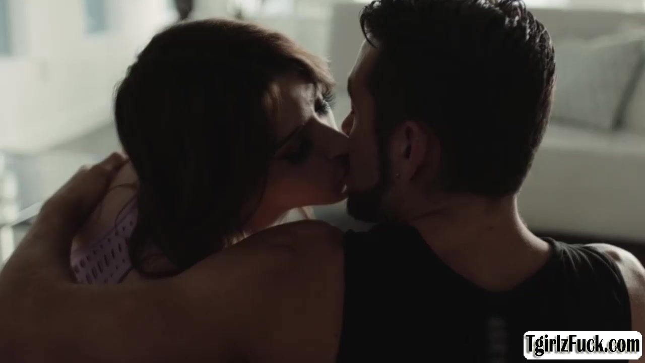 Beautiful brunette transexual Casey Kisses makes out wiht a hunk straight guy Dante Colle kissing while cresiing masculine body,big tits, big ass and big cock. the dude then whips out her big tranny dick to deepthroat blowjob before her big ass gets anal barebacked.