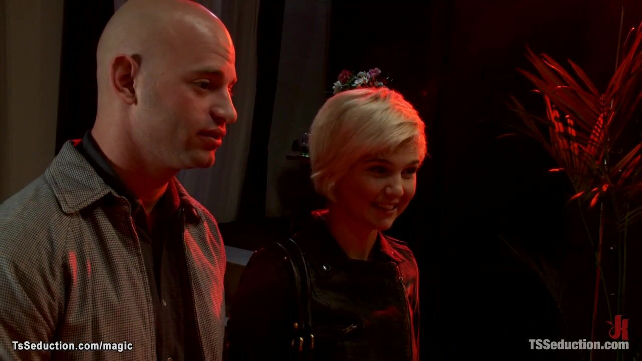 In The Red Light District big boobs blonde dom shemale in latex Danni Daniels dominates and fucks straight couple Chloe Camilla and Patrick Rouge