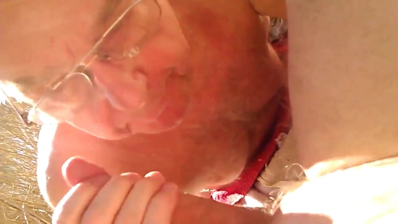 Description: Alter Mann lutscht gierig den Schwanz eines jüngeren und macht ihn schön steif.