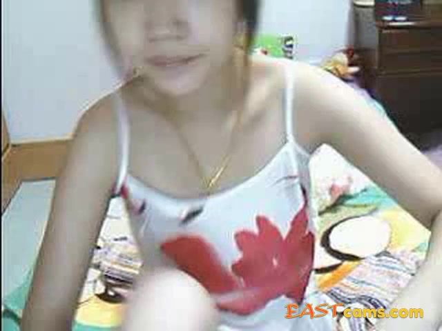 Young hairy slim asian girl takes her clothes off on webcam and spreads her pussy.