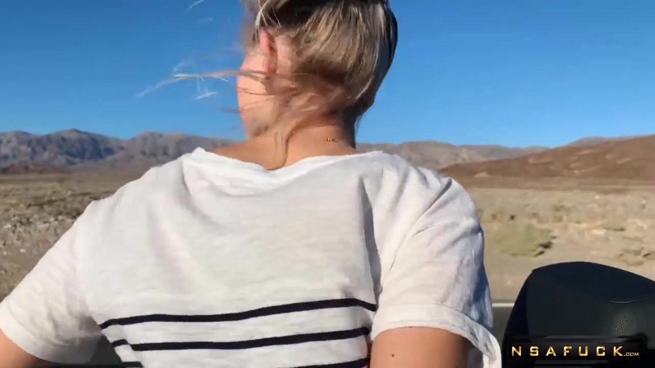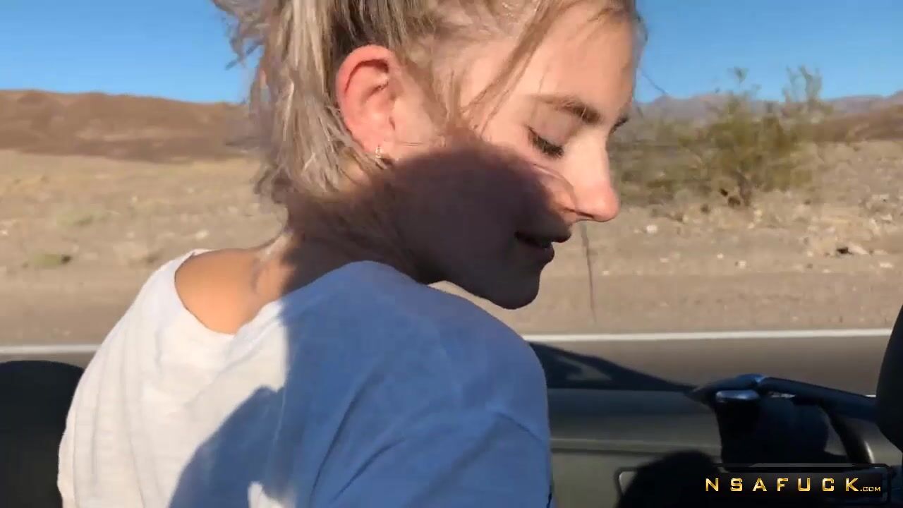 Public Teen Sex in the Convertible Car on a way to Las Vegas Eva Elfie