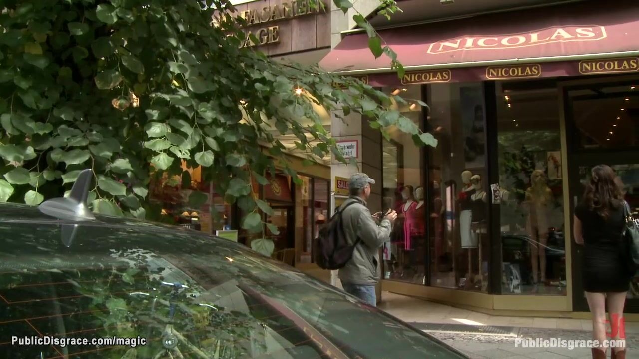 Small tits Euro blonde Blanche Summer is bound and exposed naked in public widow then in the park ass and feet whipped by dom Princess Donna Dolore