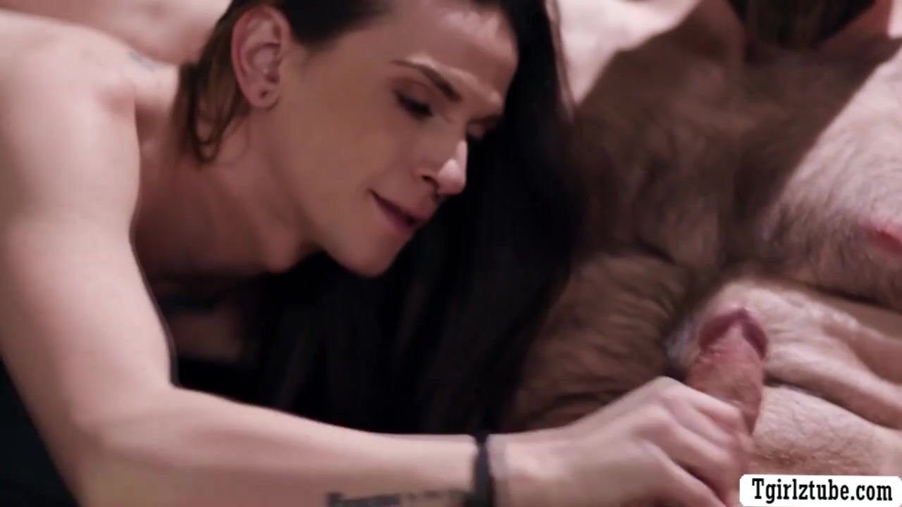 Handsome dude meets his TS ex girlfriend at the cafe and they start talking on the couch.After that,they get horny and start kissing each other.Next is,he lets her throat his hard big cock passionately and he then fucks her ass so hard.