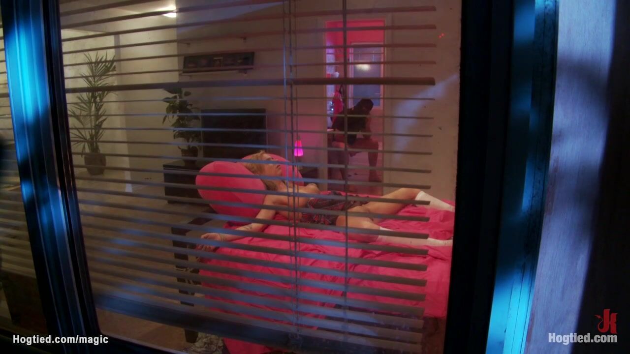 Big tits blonde college babe Kaylee Hilton is bound by masked intruder Mark Davis and down on knees mouth fucked then rough pussy and asshole banged