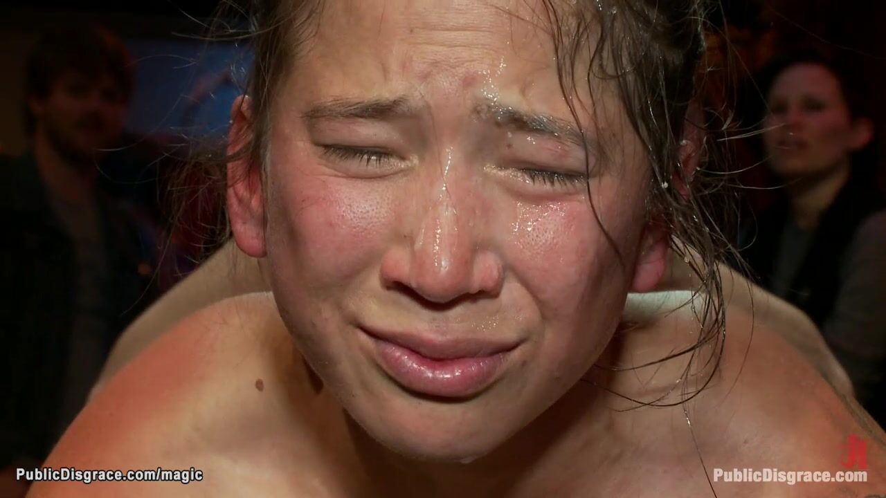 Brunette slave Vai gets bound and fisted and groped in crowded public bar then rough fucked and face cummed by big cock James Deen