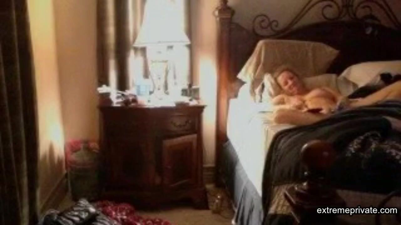 I'm quite horny for my stepmom of 45. She likes to watch porn in bed and then she grabs her dildo while I secretly watch through a camera.