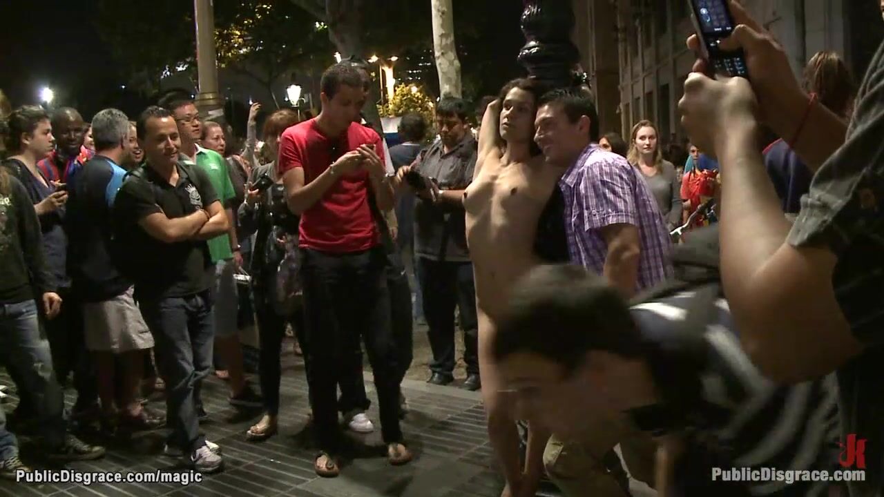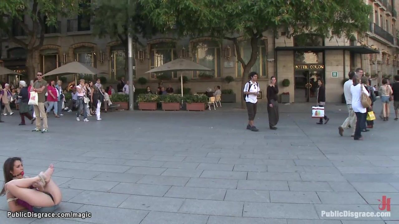 Hot little brunette Spanish babe Samia Duarte exposes her pussy in public while laying bound on the street then rough fucked in van by big cock James Deen