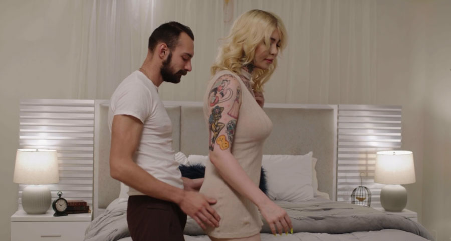 Lucky bed seller got jackpot in his TS customer because he will experience heaven with her.They start kissing each other on the bed.Next is,he lets her throat his dick passionately and he got his ass bareback fuck by his TS customer.