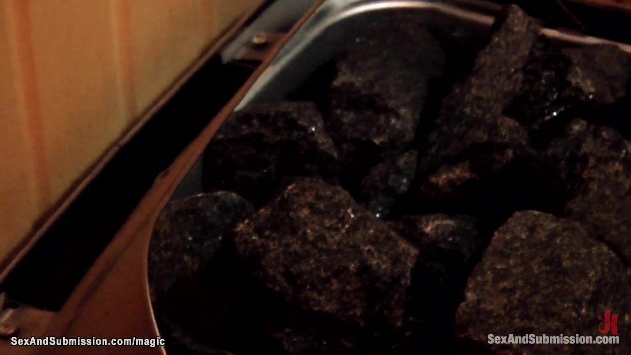 Hot brunette babe Savannah Secret is dragged in apartment by Steve Holmes and Omar Galanti and with big cocks gang bang fucked in hairy pussy till gets facial in sauna