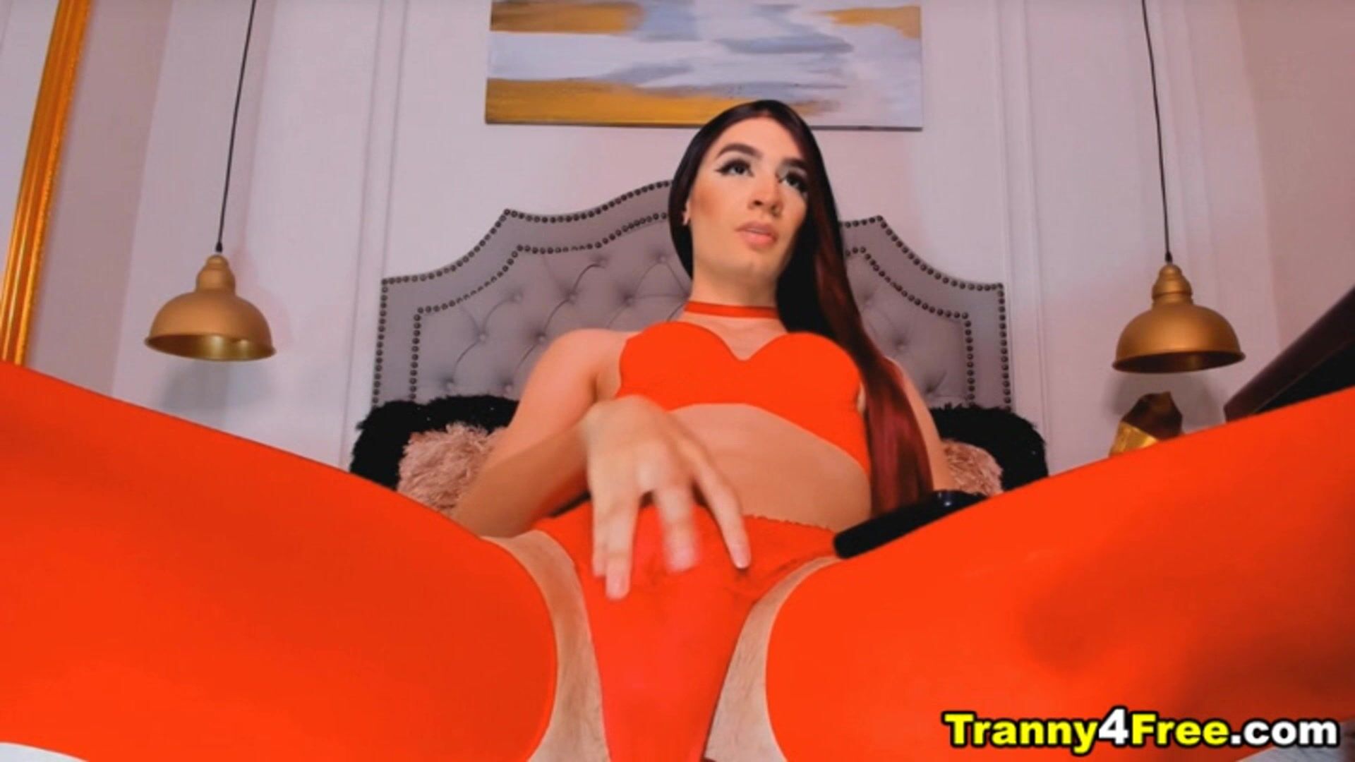 Shemale babe who was a real hottie giving herself a nice hand when her cam focuses on her spread hot legs. She jerks off her huge juicy cock hard as she reached the climax which she cum with so much pleasure. Her cock was so clean and neat that you might want to get a taste on it. With a charming face and a rocking hot body to match she shows her huge and juicy cock up. Gorgeous beautiful shemale caught in cam massaging her big breast to strip on her fans while masturbating her big cock in front of her cam.