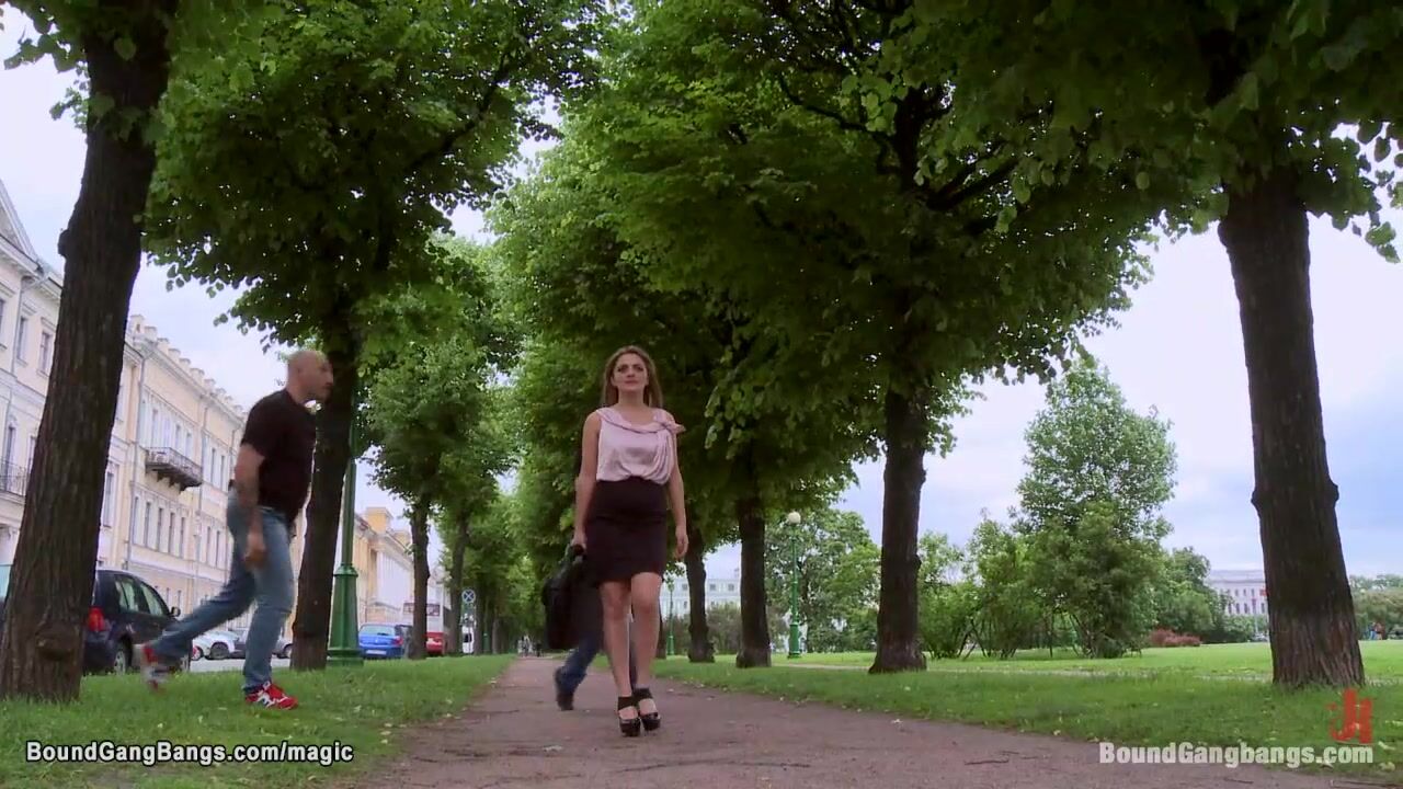 Hijacked huge tits blond Russian girl Dominica Phoenix is bound by group of men and anal gang bang and double penetration fucked in various positions by their huge dicks