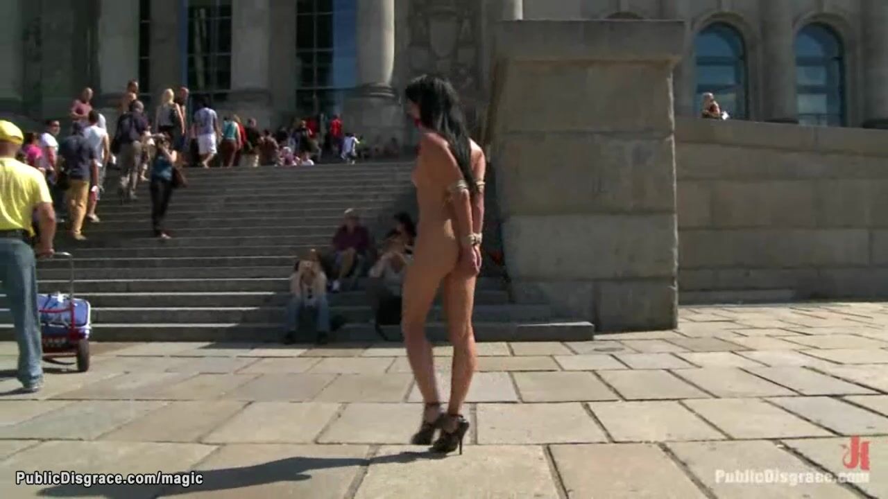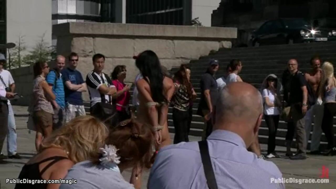 Super hot slim Euro babe Felicia D walking in public gagged and bound then brough in truck parking where gets vibrated by master Tommy Pistol in front of truck drivers