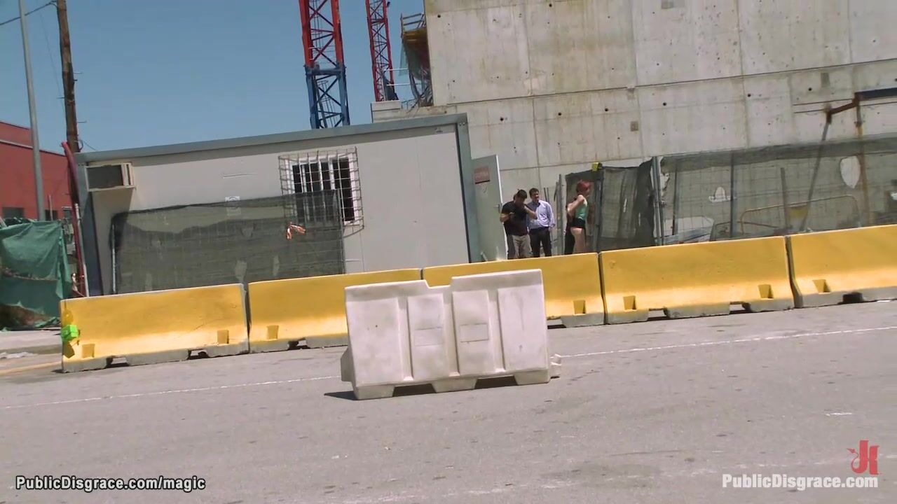 Red head Euro babe Yakima Squaw bound walked throug the city then throat fucked in squating position till big dick pussy fucked in front of strangers outdoors