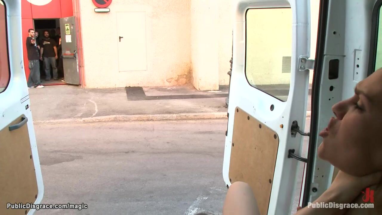 Little brunette Spanish slave Samia Duarte bound and exposed left on the ground in public place then fucked all over the city by big cock master James Deen