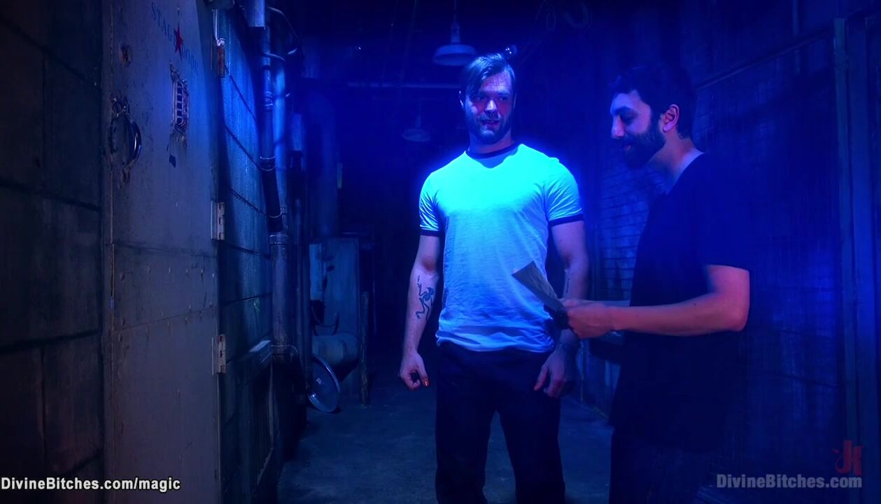 Two naive men are invited to Halloween femdom tea party by femdoms Bella Rossi and Cherry Torn and Veruca James and anal gang bang fucked in group sadistic action
