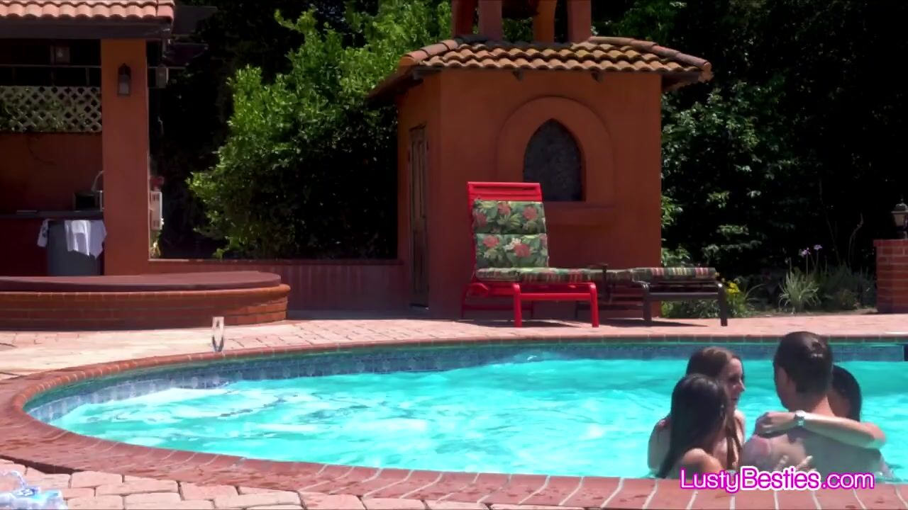 They won the prize and its time to celebrate.. the coach can't wait to party with the swimmer girlfriends but they end up sharing his hard dick!