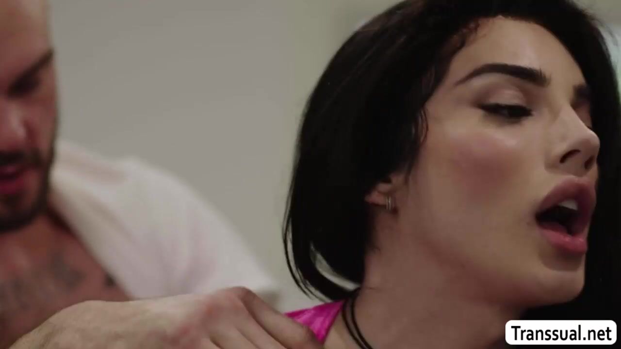 Seductive TS is doing her daily work out in the gym and a guy is starring at her.After that,they guy cant resist his urges and he then licks her ass first to makes it wet.Next is he bareback fucks it so deep and hard.