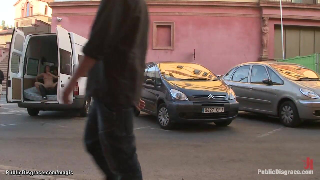 Gagged Spanish hottie Samia Duarte is bound on the public street by dominatrix Princess Donna Dolore then in the van fucked by big cock James Deen on old mattress