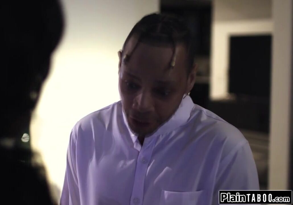 Ebony found out her guy had an affair with her mum and he blames it on her being so tame.The black babe takes control and sucks off his big black cock.The brunette gets her wet cunt eaten out and shoves her pussy on his dick and fucks it