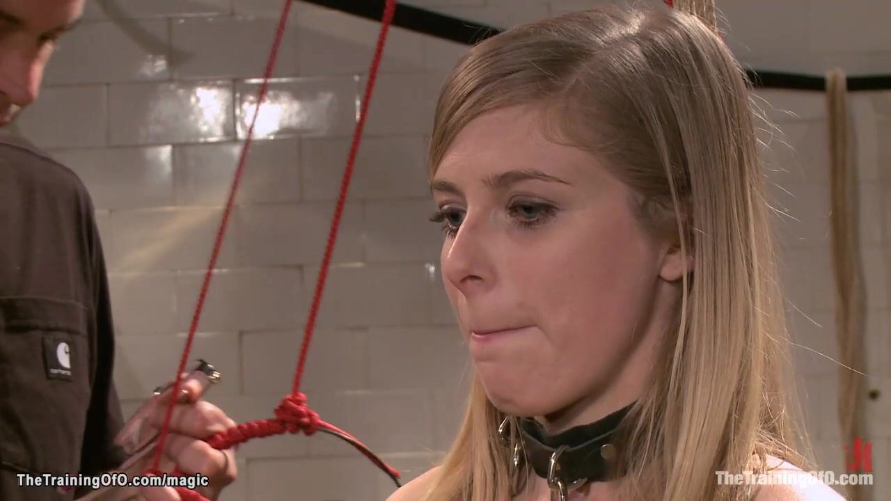 Big tits blonde slave trainee Penny Pax carrying buckets bound to her chest then whipped and flogged by master James Mogul till anal fucked by gimp with huge cock Owen Gray