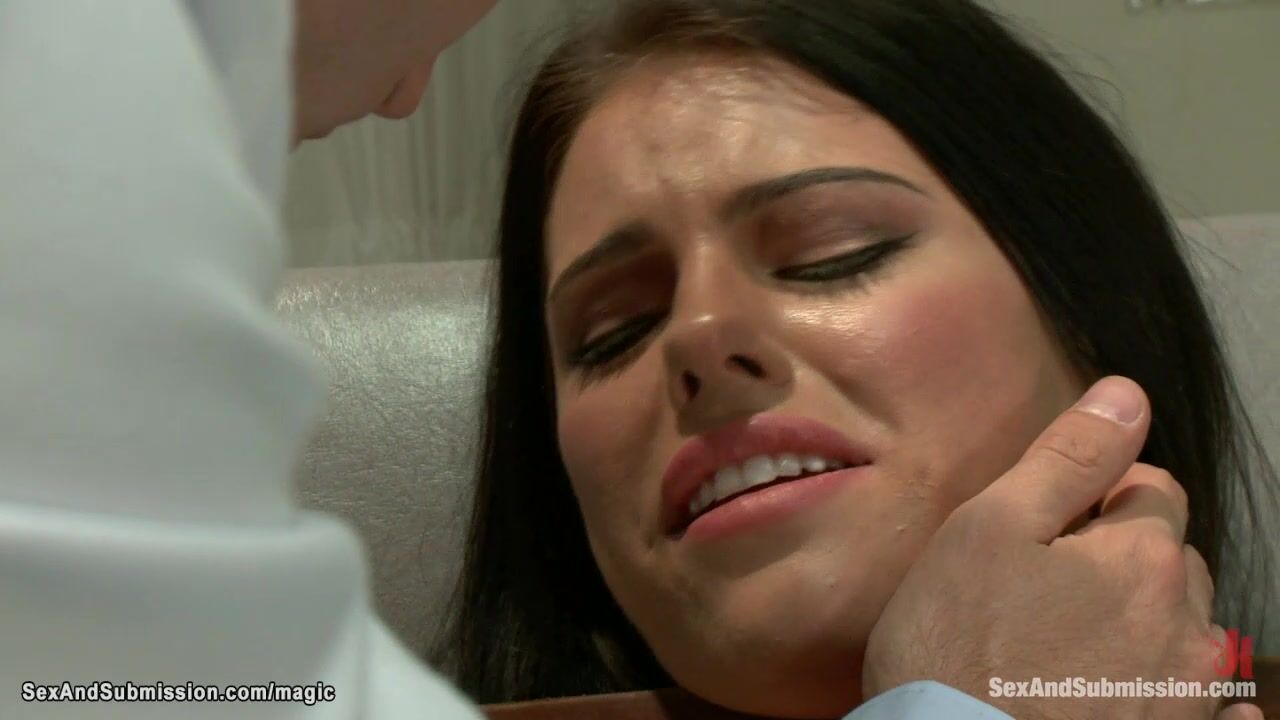 Little brunette patient Adriana Chechik gets deep throat fucked by doctor James Deen in padded room then strapped in the office rough shaved pussy banged