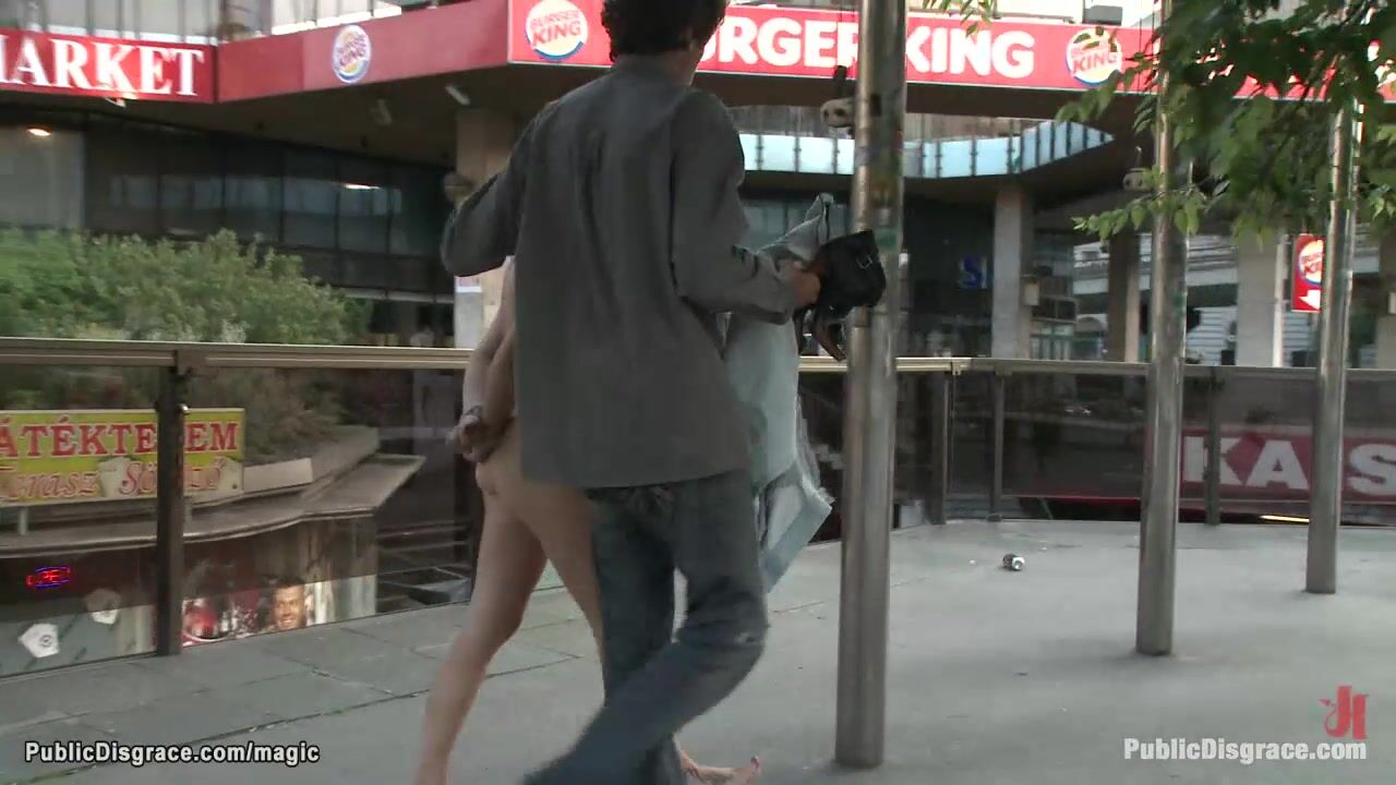 Description: Euro babe Lucy Bell is bound and naked and barefoot walked through public streets then gagged and big dick fucked by master Steve Holmes in various places