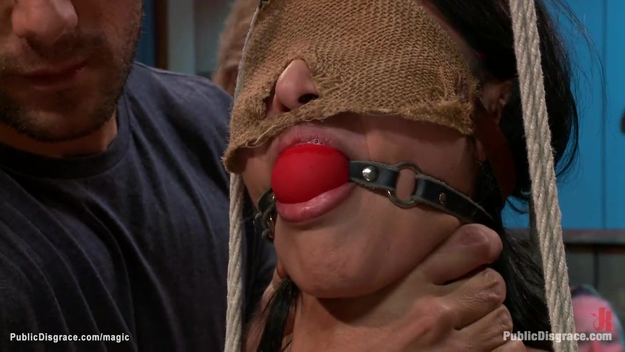 Young busty brunette babe Jayden Lee first time bound in public by dom Princess Donna Dolore then anall fucked by big dick Ramon Nomar in front of strangers
