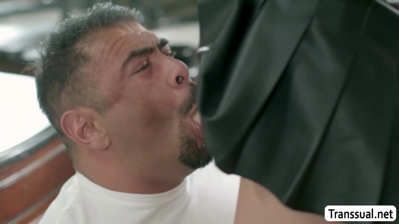 Fat stepfather hears his shemale stepdaughter moaning in the bathroom.He opens the door and saw her jerking off her shecock.Instead of getting mad,she lets her stepdad throat her shecock passionately and in return,she licks and fucks his ass so deep.