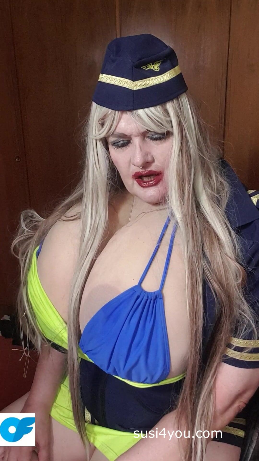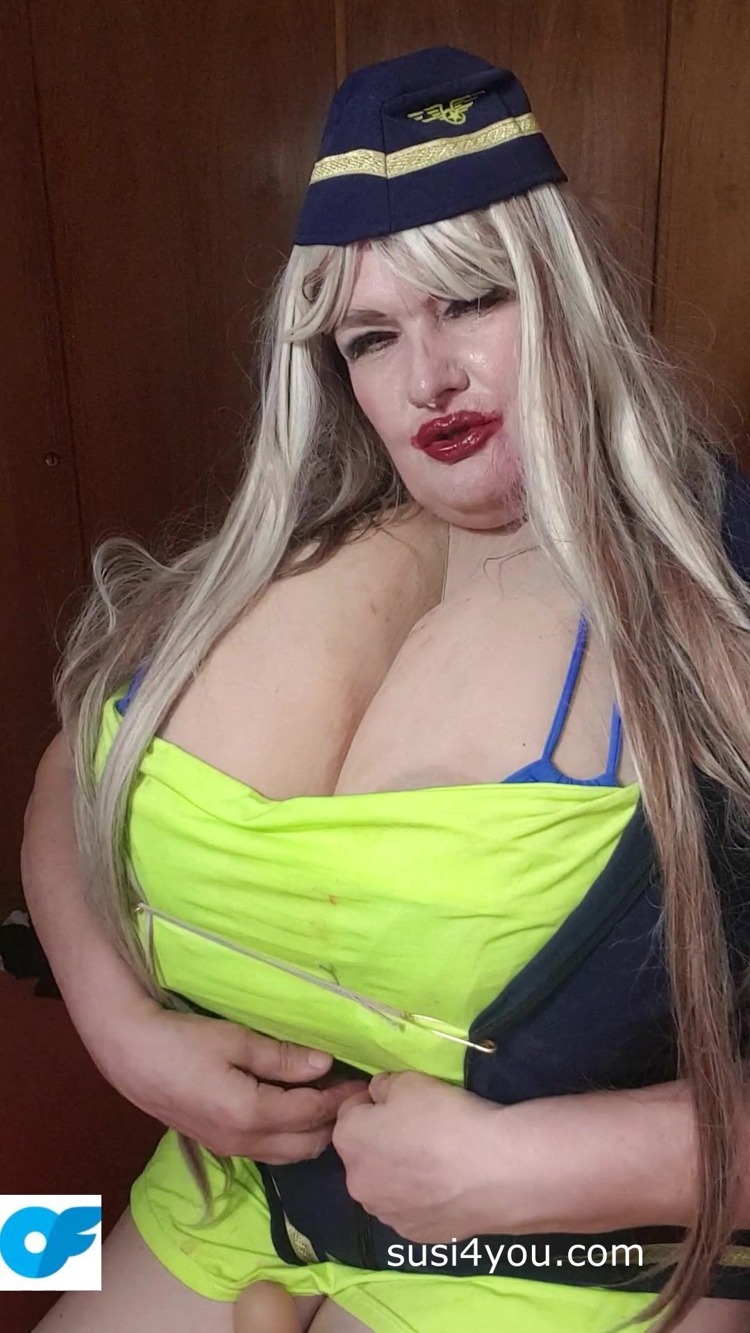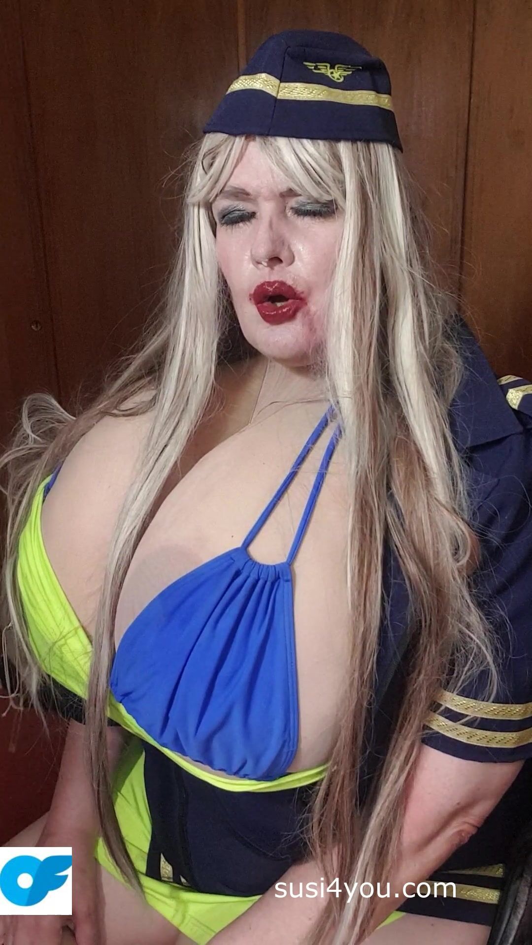 Sexy Susi as a stewaress with cup k tits giving blowjob to squirtingtoy