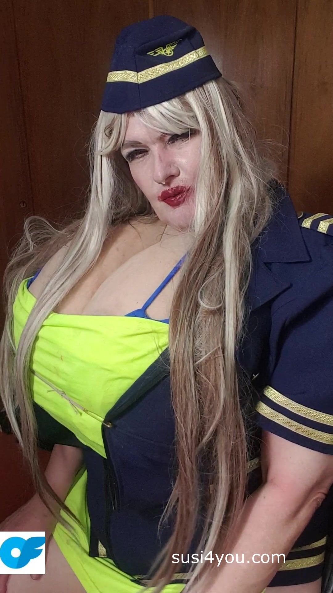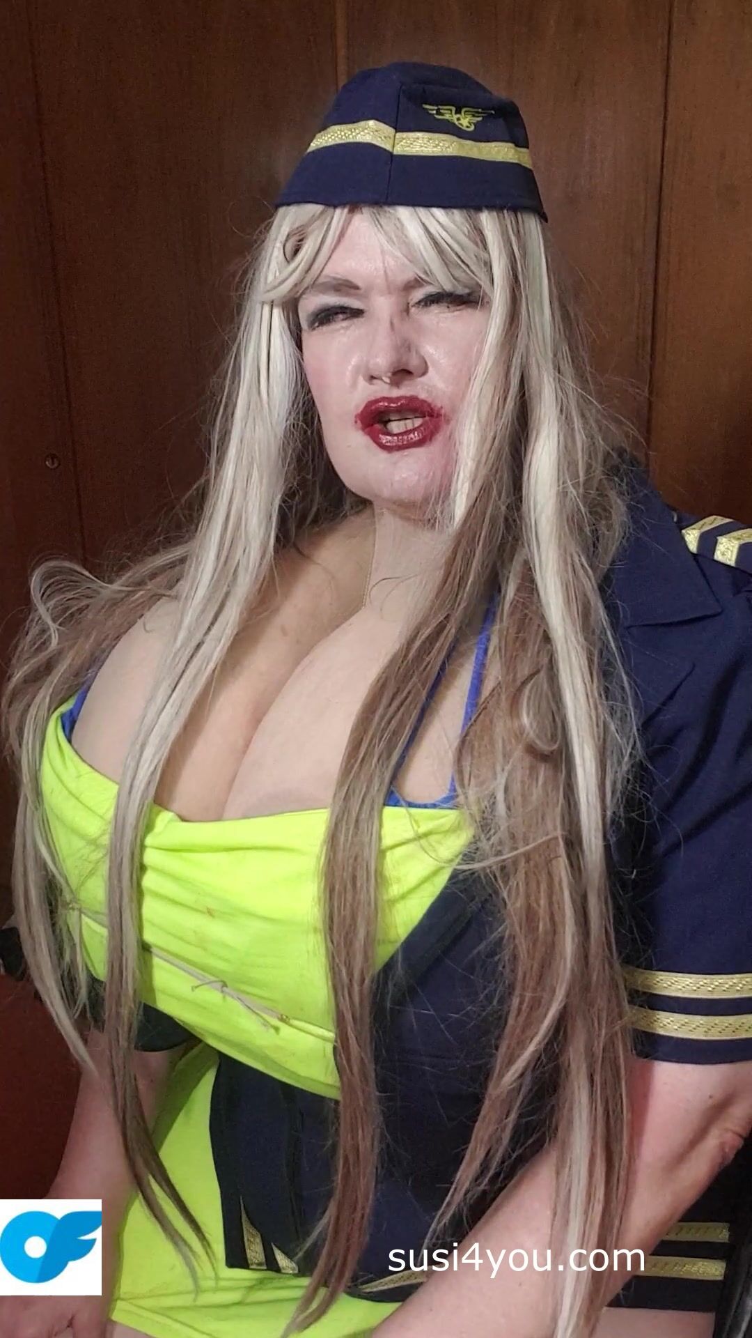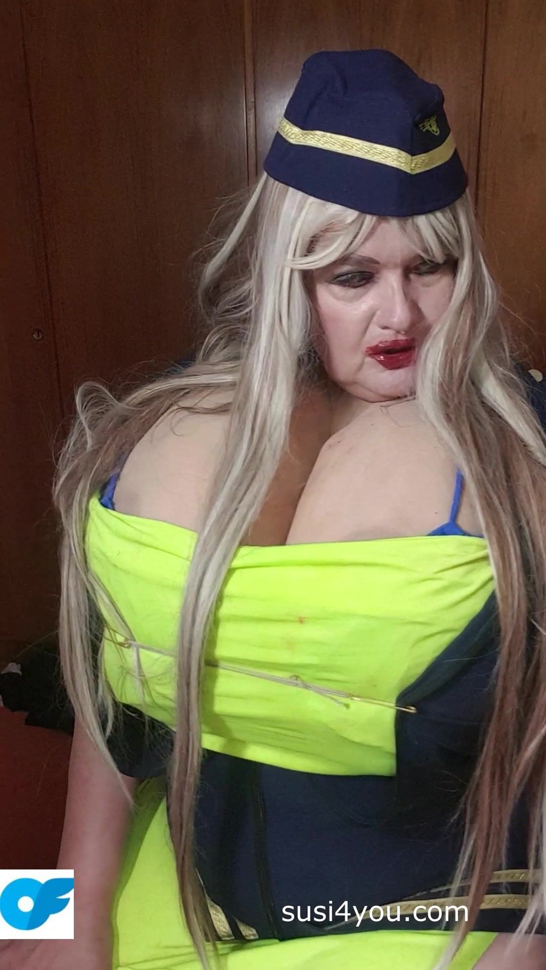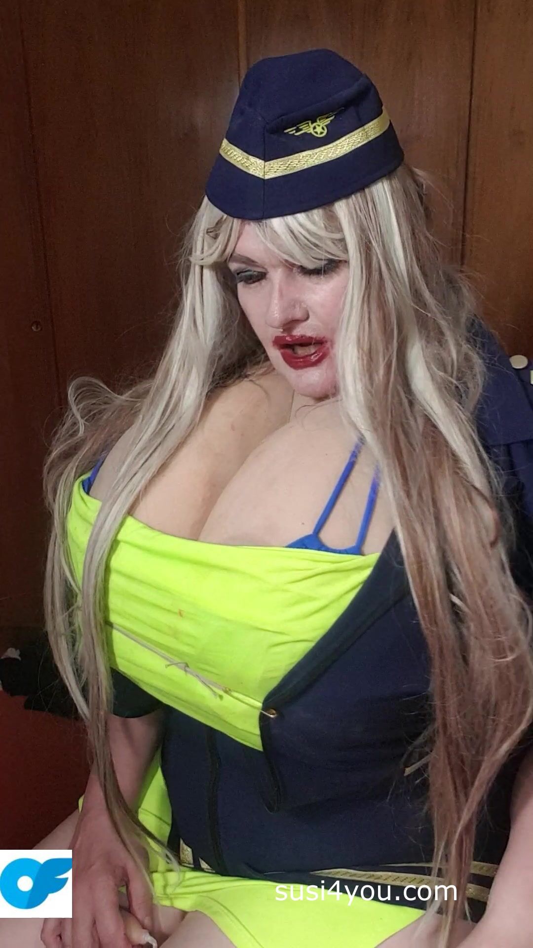 Sexy Susi as a stewaress with cup k tits giving blowjob to squirtingtoy