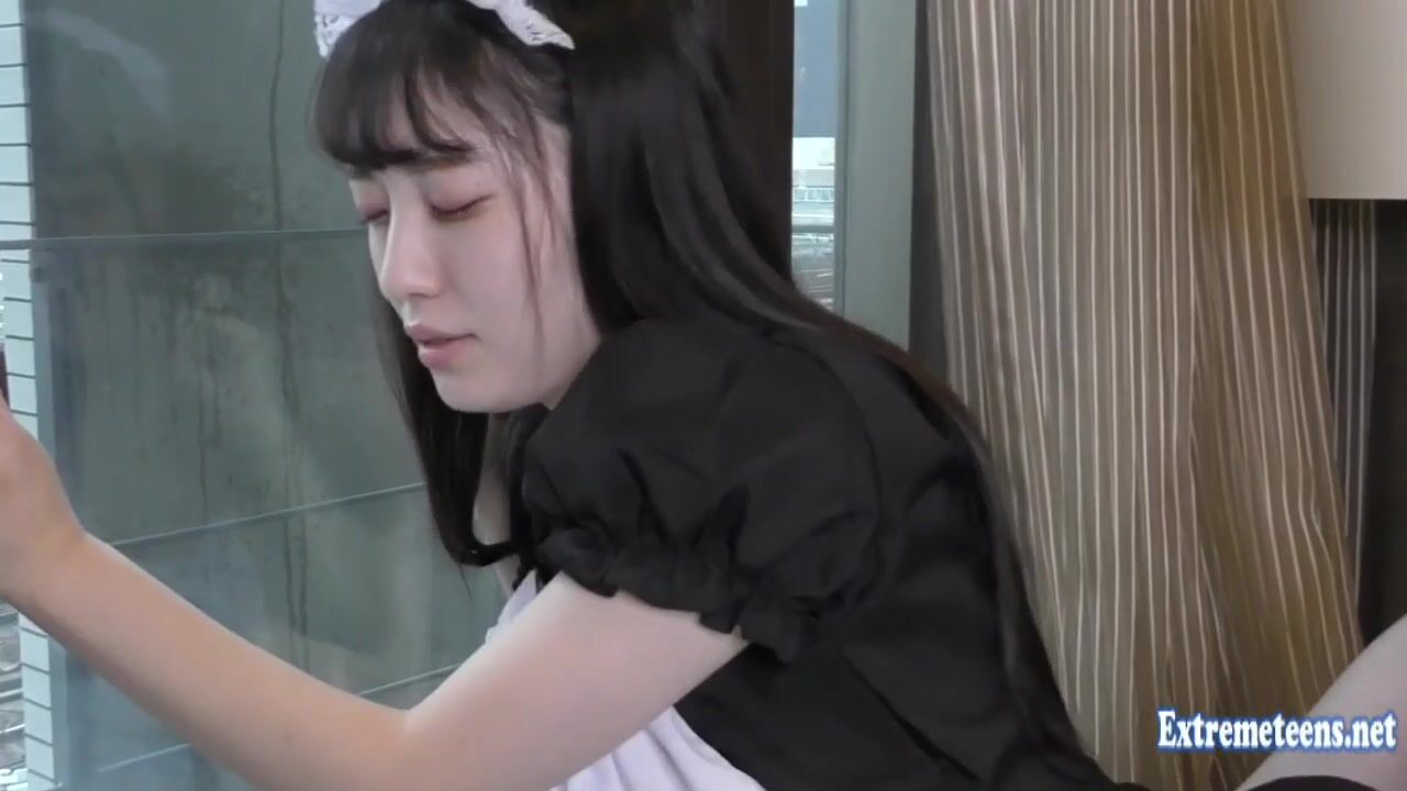 Akemi fucks uncensored, cosplay student with lovely round ass. Fucks right over rail track with commuters watching from the train. Standing creampie in window.