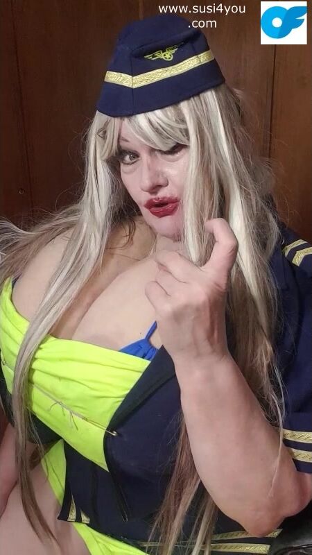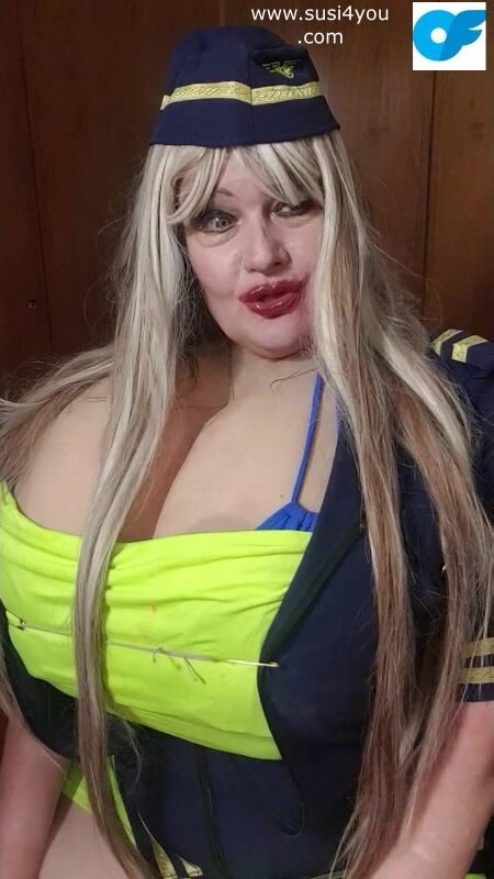 Sexy Susi as a stewardess she is licking bbc toy cock till you come