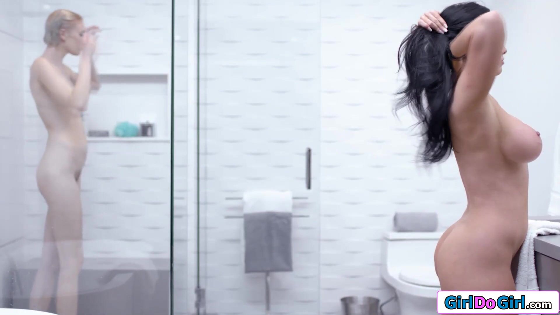 Small tits teen takes a shower when her mums big boobs milf gf walks in.The old and young lesbians soap up and the busty cougar is titsucked and pussy licked.The brunette gives oral to the fit tall blonde hairy snatch and they scissorfuck each other