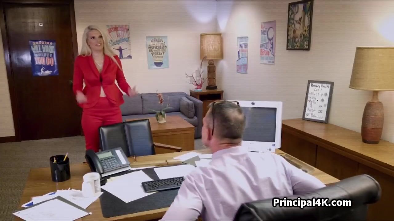 This busty house wife is called into the principals office. Her small one is in deep trouble but she can do a lot of things to improve her situation!