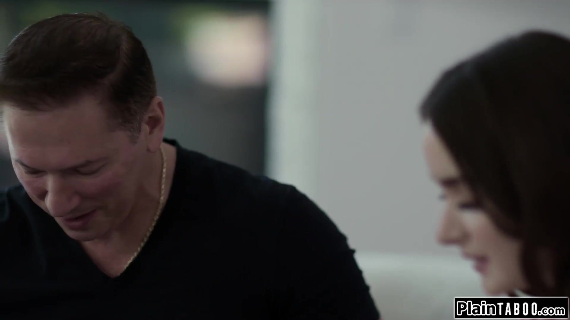 Busty stepdaughter stays over at stepdads.While watching a movie with a sexscene hes asks if she would like him to teach her some.They kiss and he masturbates and licks the big tits brunettes virgin hairy pussy.She sucks cock and is fucked gently