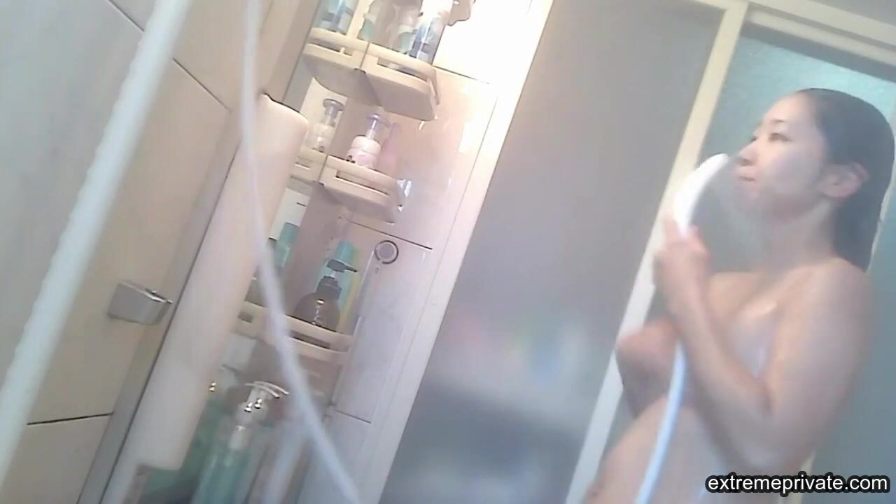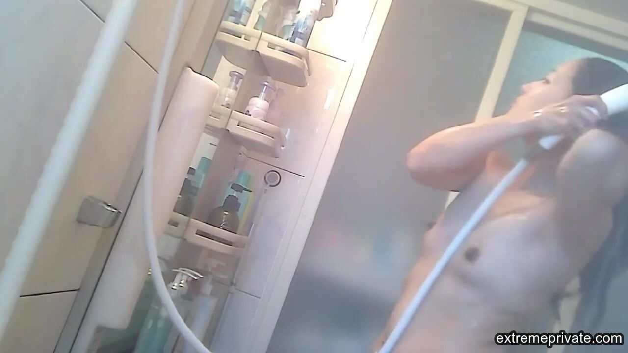 My mom (Kyoto) takes a shower late in the afternoon. Good view of her still sexy body and her small perky tits. More of her?