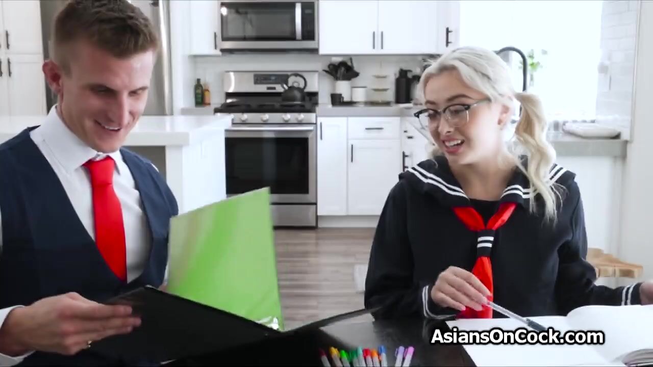 Asian coed pussy and titty fucked by tutor