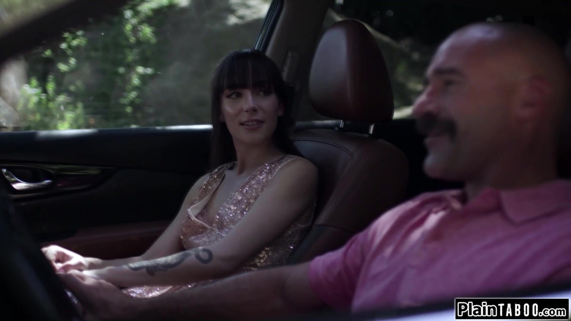 Small tits brunette taken to a quiet spot by her bfs stepdad.He puts her hand on his dick before taking it out for her to jerk off and deepthroat.Outside of the car he fingers the small boobs babes tight ass and anal fucks her with his big cock