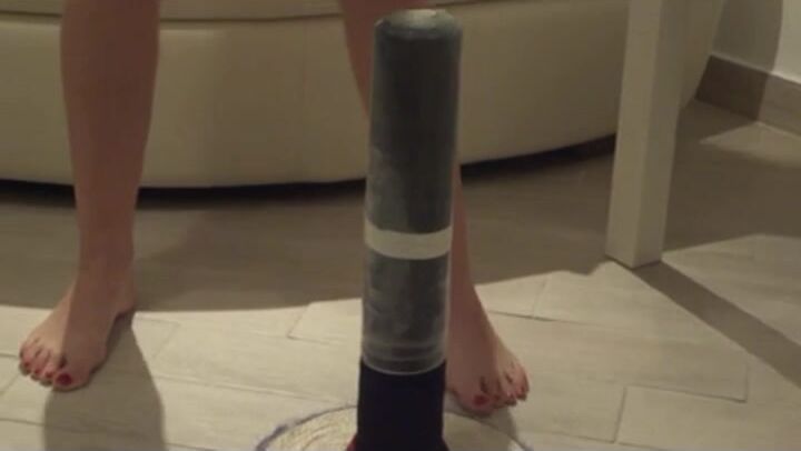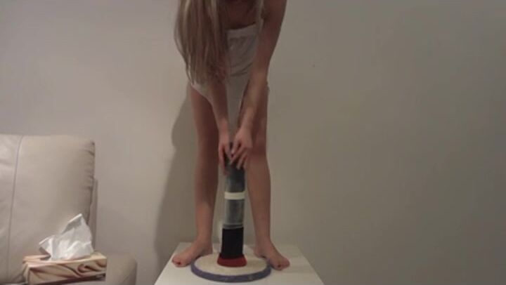 masked girl enjoys big toys