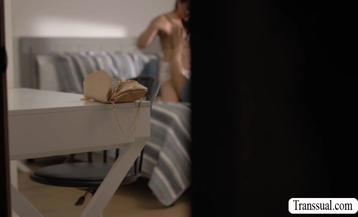 Asian TS visits her fat neighbor and confronts him for being pervert.Instead of getting mad,they go to his room and they suck each others hard cock passionately.Next is,she licks and bareback fucks his ass so hard.