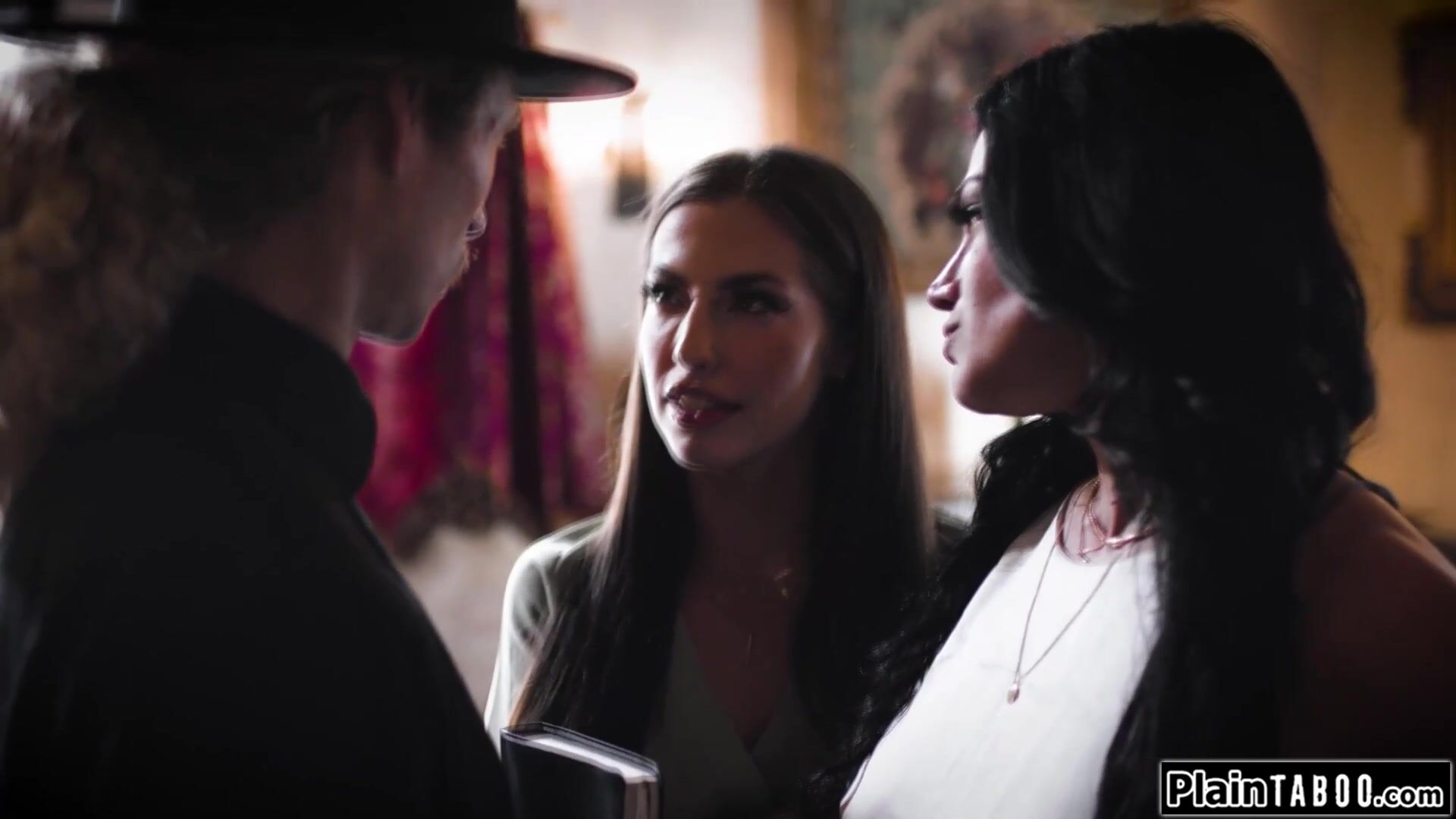 Lesbian couple convert priest by facesit and sucking him off