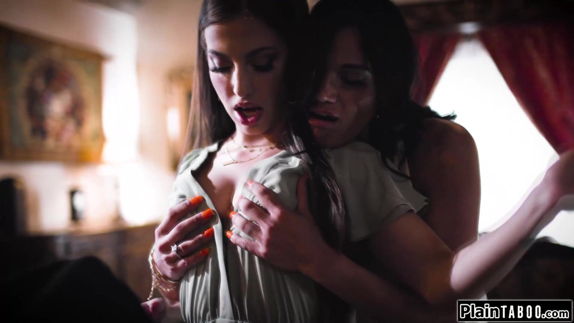 Lesbian couple convert a disgusted priest by licking pussy ifo him while he jerks off.The small tits petite babe facesits him with her hairy pussy while her busty gf suck off his big cock.The brunette rides his dick and squirts out an orgasm