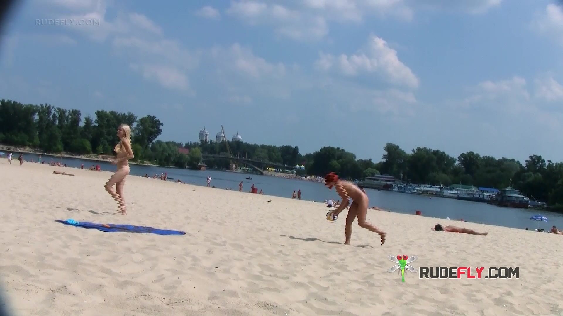 Curvaceous nude beach girl caught by a voyeur on a hidden camera