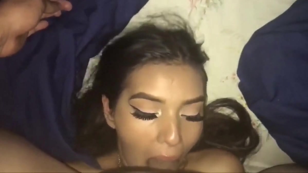 Her new sex partner fucking her beautiful face and then she rides his hard dick. At the end he fucks her from behind and finishes in her shaved vagina.