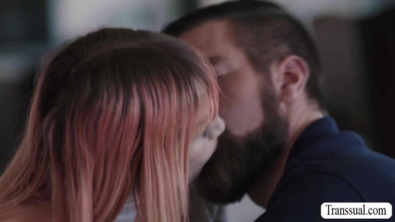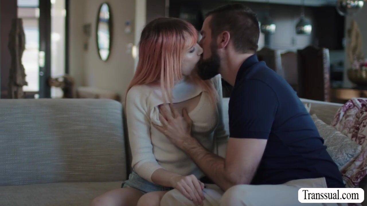Pink haired TS is on the couch taking a nap and her stepdad awakes her.After that,they start kissing each other and she then throats the big cock of her stepdad.In return,her stepdad licks her tight ass first and he then fucks it so deep and hard.