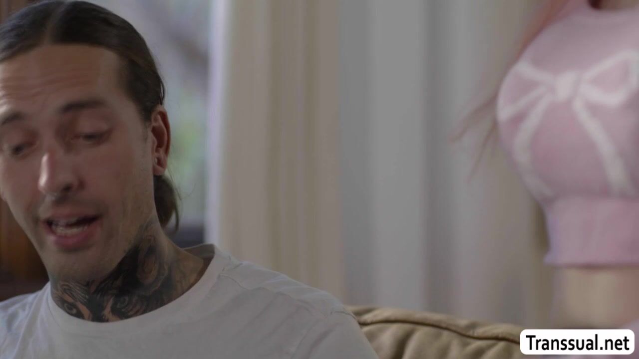 Handsome dude got seduced by the big ass of his TS stepsister while hes reading books.After that,he lets her throat his hard big cock passionately and in return,he bareback fucks TS stepsis tight ass so deep and hard.