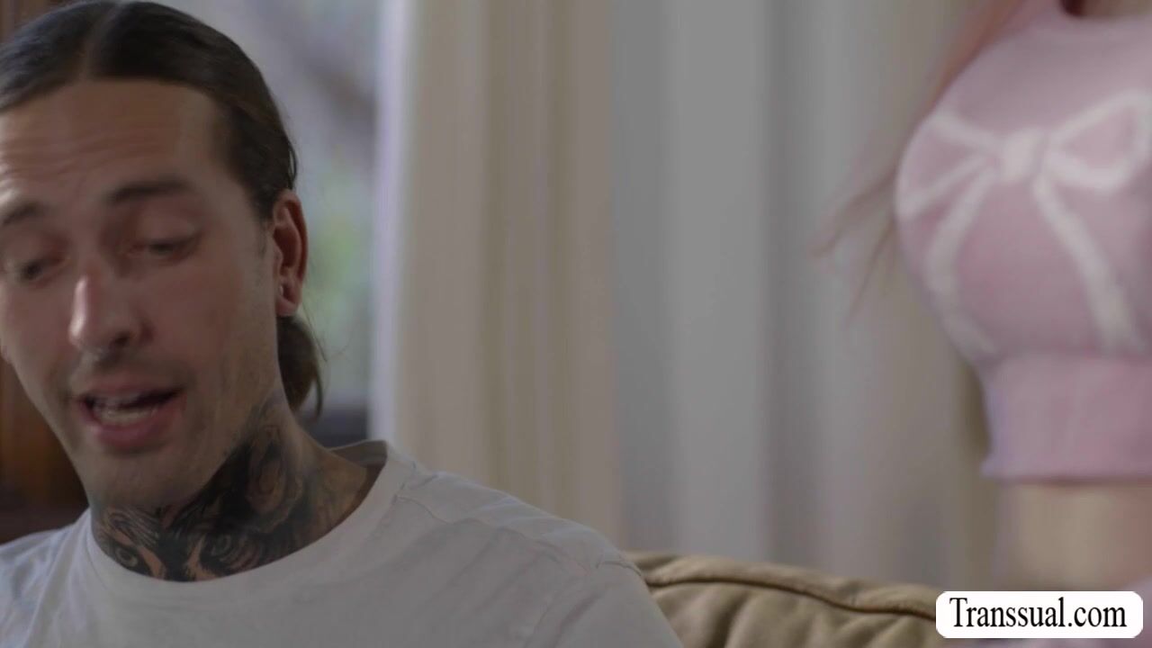Stepbro got seduced by the big ass of his TS stepsister while hes reading books.After that,he lets her throat his hard big cock passionately and in return,he bareback fucks TS stepsis tight ass so deep and hard.